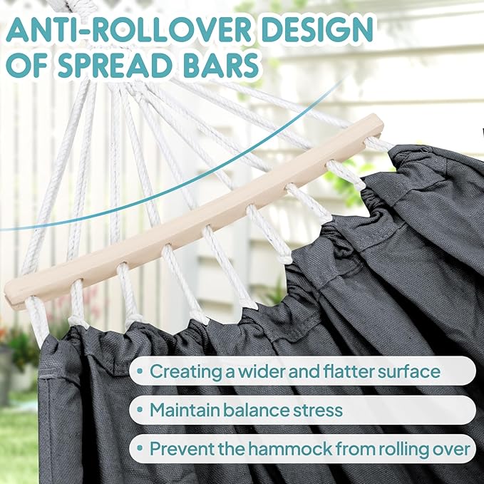 Anyoo Garden Cotton Hammock Comfortable Fabric Hammock with Spreader Bar Sturdy Hammocks Up to 450lbs Portable Lightweight Hammocks with Travel Bag for Camping Outdoor/Indoor Patio Backyard