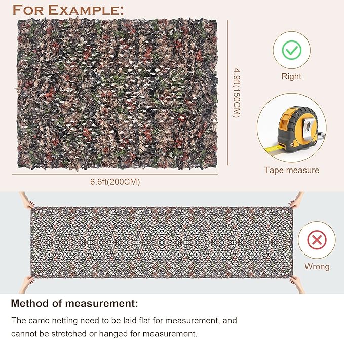 - Wide Application: Our high quality camo netting are usable for various applications, such as Hunting, Shade, Wildlife Watching, Military Applications, Shooting, Hiding, Covering, Shading, Backdrop of the stage, Decorating, Camouflage and more. Every net within our store offers maximum concealment and outline suppression