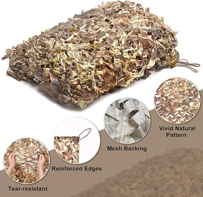 - Wide Application: Our high quality camo netting are usable for various applications, such as Hunting, Shade, Wildlife Watching, Military Applications, Shooting, Hiding, Covering, Shading, Backdrop of the stage, Decorating, Camouflage and more. Every net within our store offers maximum concealment and outline suppression