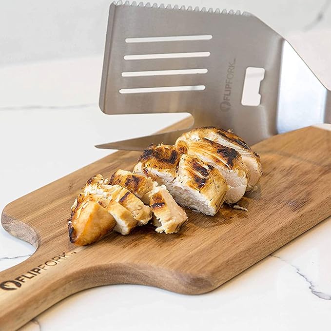 - Multi 5-in-1 Tool–Innovative Spatula features a sharp Knife-edge, Fork, Tenderizer, Bottle Opener.