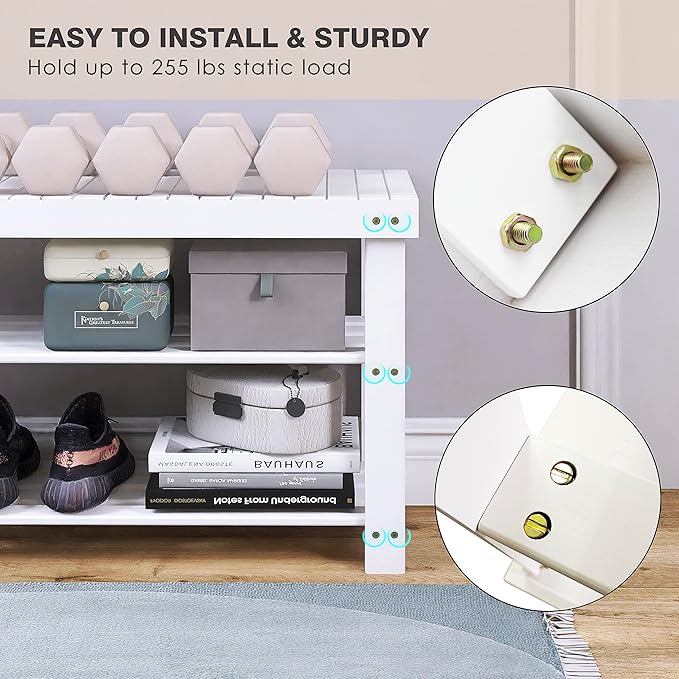 - ★ SAFE DESIGN & PROPER SIZE: Counterbore, smooth surface, and round corners will cause no harm to your belongings. Ideal size of 33.86 x 11.23 x 17.9 inches accommodates up to 4 pairs of shoes per shelf