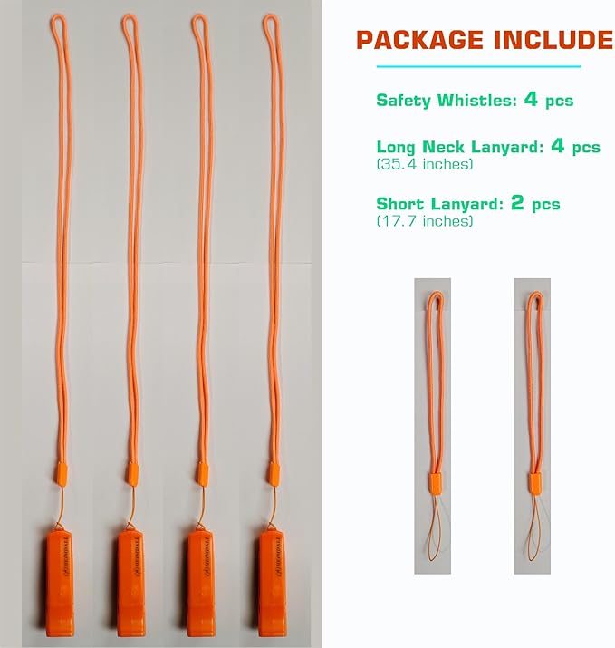 - NON BRITTLE PLASTIC, can't crack or break, bright color-highly visible, never fade and non corrodible, pretty good whistles to carry in case of emergency.