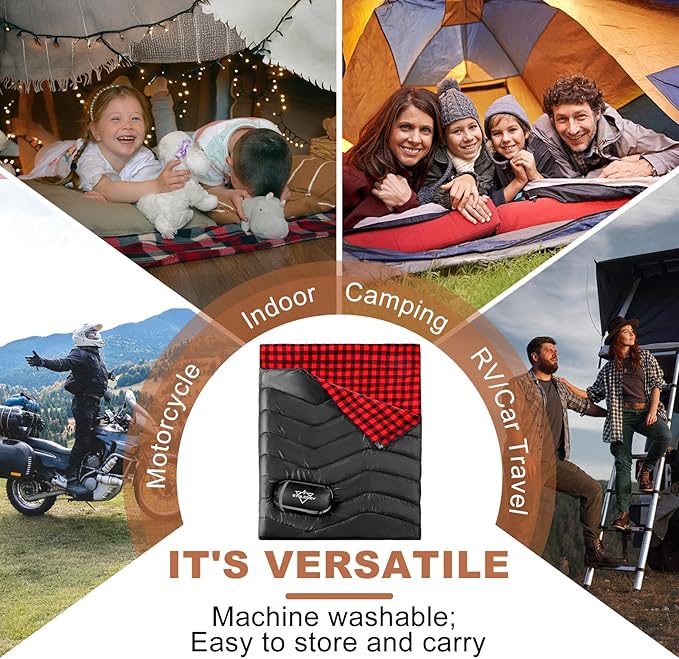 - 【Hassle-Free Maintenance - Machine Washable】This waterproof sleeping bag is designed for effortless care: simply toss it in the washing machine post-trip, or wipe spills away in seconds with a damp cloth.Tough enough to handle kids’ (10-12) playful mishaps and reliable for adults’ rugged outings. Perfect for Couples/Partners Camping, Family Camping with Kids, Multi-Day Hiking/Backpacking Trips, Car Camping/Trunk Camping, Emergency or Temporary Accommodation, and more.