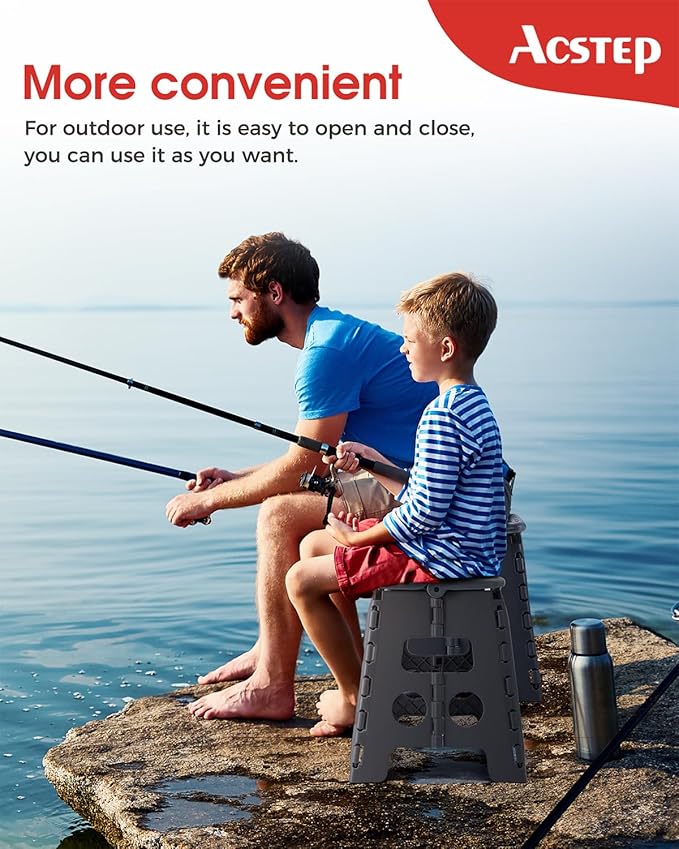 ACSTEP 13" Folding Step Stool- Holds up to 300Lb,The Lightweight Non-Slip Upgrade Collapsible Stepping Stool is Sturdy Enough to Support Adults and Safe Enough for Kids(Grey,1 Pack)