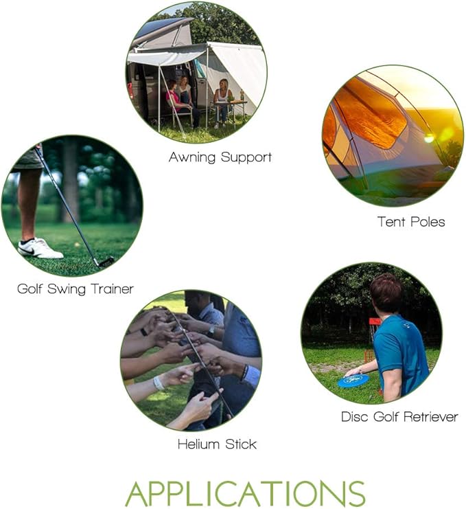 - Applications: You can easily adjust and resize them to any length. Sections can be removed and cut down to make any length you need with only minor difficulty. Perfect as Replacement Tent Poles, Awning Support, Disc Golf Retriever, etc