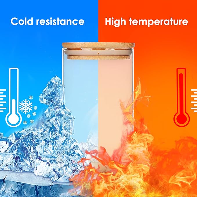 - High Quality: Glass jars made of high-borosilicate glass which features with great stability, higher hardness, heat resistance with better light transmission. Each jar cover comes with a food-grade silicone sealant ring, more effective in preventing fluid flow and the entry of gases and bugs