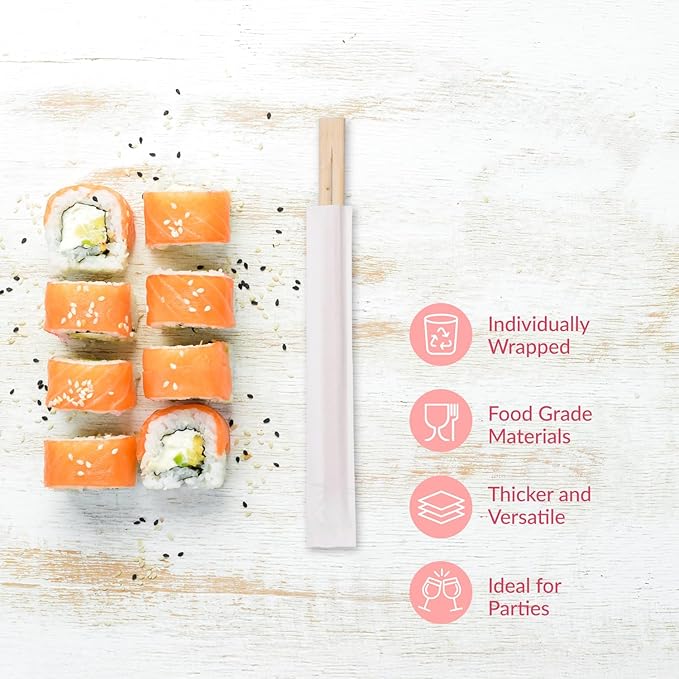 - Individually Wrapped: Each wood chopstick is sealed in protective wrapping, ensuring cleanliness and making them ideal for restaurants, takeout, catering, and home use without contamination concerns