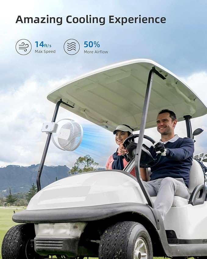 Koonie Portable Clip on Fan, 8-Inch 10000mAh USB Rechargeable Battery Operated, 4 Speeds, Strong Airflow, Sturdy Clamp for Office Desk Golf Car Outdoor Travel Camping Tent Gym Treadmill