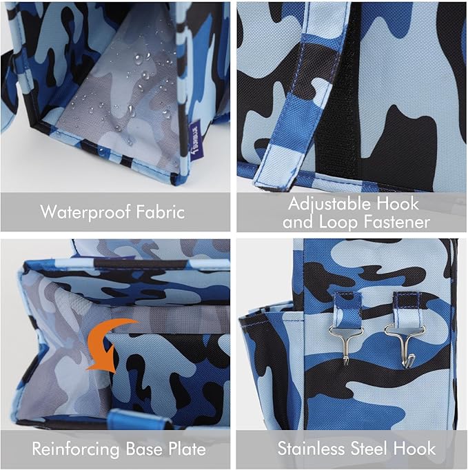 Surblue Bedside Caddy Hanging Bed Organizer Storage Bag Pocket for Bunk and Hospital Beds, College Dorm Rooms Baby Bed Rails, Wheelchair Side Bag, Camp Chiars, 4 Pockets and 2 Hooks (Small Ocean)