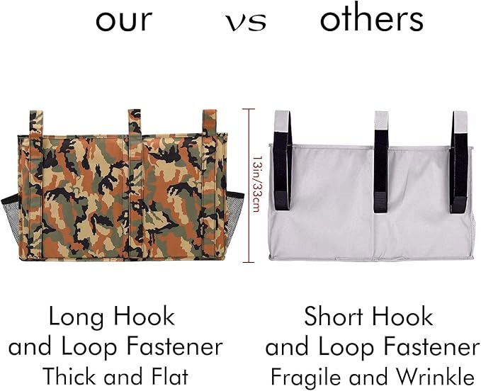 - Great Design: The hanging organizers have three adjustable heavy-duty hook and loop fastener belts that can be firmly fixed on the bed rail, and bed caddy organizers also can be hung stably on the head of the bed. The back of the bedside pocket with cardboard support is durable and can bear heavy weight. Easy to use, no assembly required.