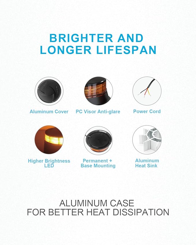 - 【SCREW MOUNT】This amber flashing safety light for trucks with screw mount kit allows for flexible mounting on specific vehicles and can be used for temporary or permanent installations;(plug not included)