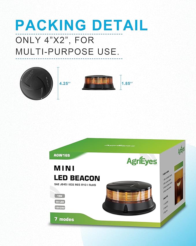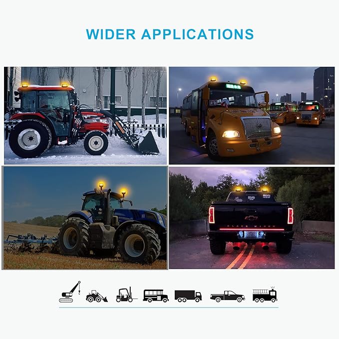 - 【WIDE APPLICATION】Amber LED roof strobe lights are suitable for all vehicles equipped with 12-24V power outlets;emergency vehicles, construction trucks, trucks, snowplows, shovels, tractors, golf carts, UTV vehicles, school buses, postal services, and safety alerts