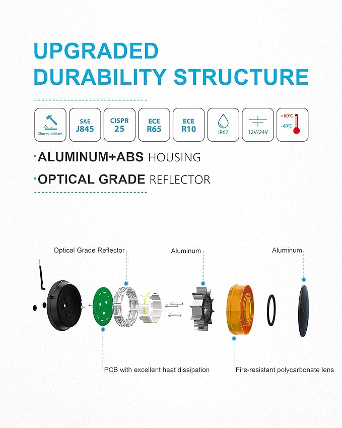 - 【HIGH QUALITY】The flashing hazard lights are made of durable ABS material and a crystal-clear PC mask that outputs maximum brightness;waterproof IP67 rating, can be easily used in rain and snow with a durable life of 50,000 hours