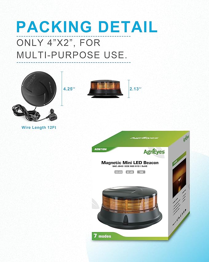 - 【FLASH MODES】This caution light has seven selectable flash modes, including single flash, double flash, triple flash, counterclockwise slow rotation, clockwise slow rotation, counterclockwise fast rotation, clockwise fast rotation, etc.;all flash modes have fast and slow speeds;the last mode calls the memory function