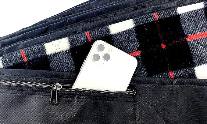 - NEVER FEAR THE WINTER WEATHER AGAIN stay warm and dry in the bleachers while supporting your kids at the football, soccer, hockey, softball, other sports or family event, out in the boat, festival or enjoying the great outdoors; your all purpose blanket has a tough black water and wind resistant polyester backing and black and white check 350 gsm anti-pill fleece to give you the best cosy feel