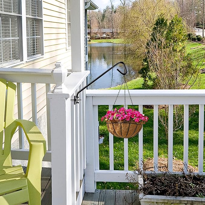 2 Packs 11 Inch Fence Deck Hook Rail Hanging Mounting Kit Heavy Duty Bird Feeder Hook Decorative Hanger for Bird Feeders Planters Suet Baskets Lanterns on Balcony Porch Railing Fence