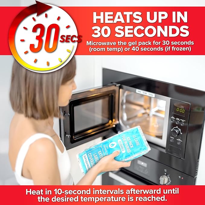 - ✅ Convenient – These gel packs for injuries are soft & simple to use. Stick in the freezer for 15-30 mins & you'll get an ice gel pack with cooling effect! For heat compress, just heat in the microwave for at least 30 secs up to 1 min