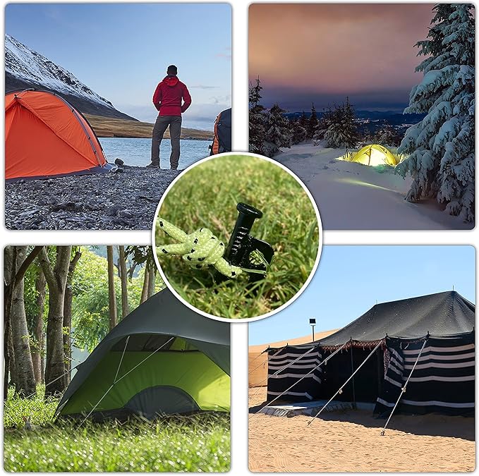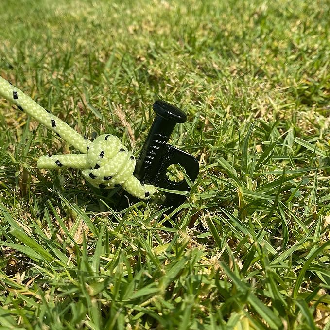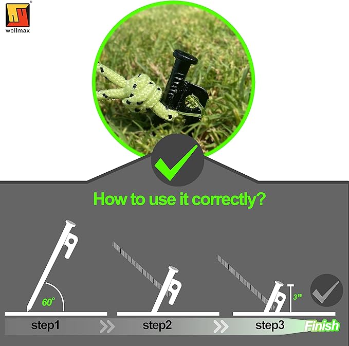 Wellmax 10PC Heavy Duty Tent Stakes with 2PC Glow in Dark Rope 3/16" x50ft and 1/4" x50ft (Black)