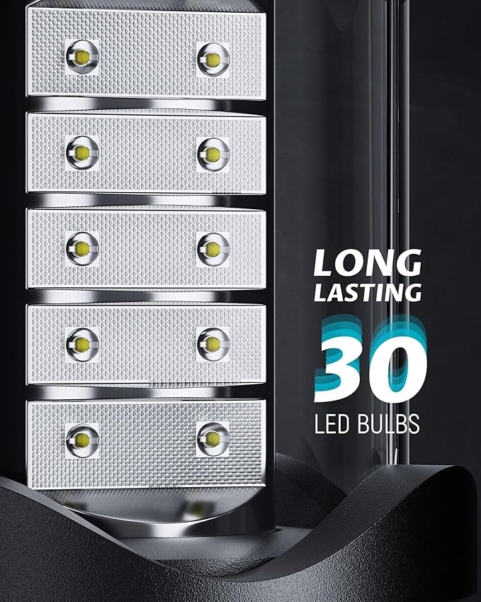 - ULTRA BRIGHT & SAFE: Designed with 30 energy efficient LED for 360 degree lighting (97 sq.ft coverage), the latest LED technology features 150 lumens, emits softer and brighter; Use 3 AA batteries (not included), is safe to touch at low temperature