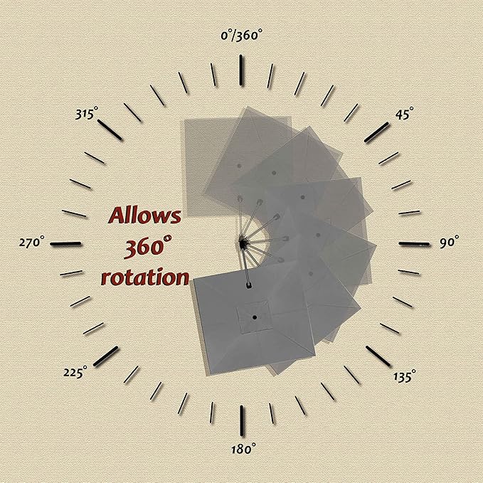 - The crank system cantilever umbrella makes it easy to raise and lower the canopy, the unique handle design also makes tilting the umbrella effortless, foot pedal allows for complete 360 degree rotation