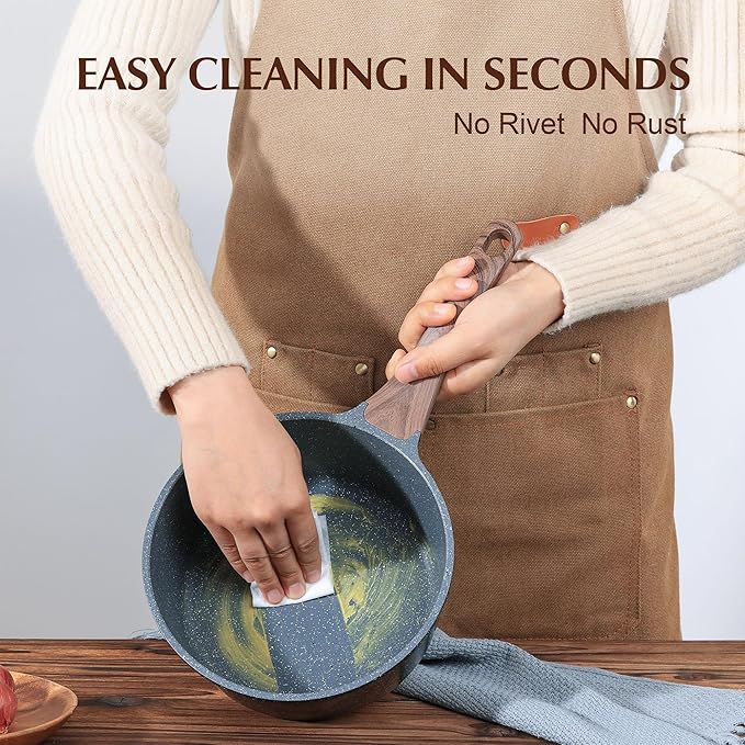 - Easy To Clean - Nonstick and no rivets, this soup pot with lid is super easy to clean. Simply wipe the induction saucepan with lid over with a sponge and warm soapy water. Make your daily food intake easier to make.