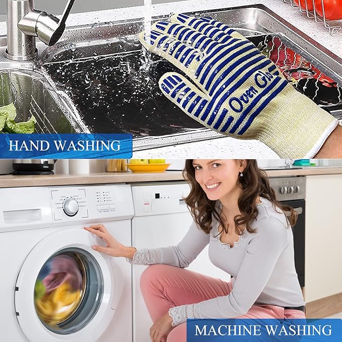 - EASY TO CLEAN & STORE: Our grilling gloves are suitable for machine washing and hand washing without affecting their thermal insulation effect. Feature with hook design which makes it easy for you to store anywhere.