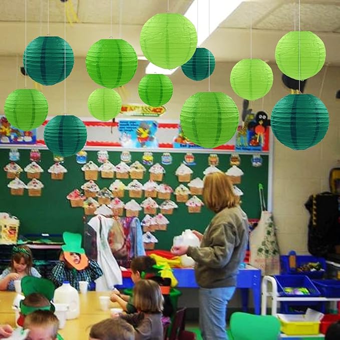 - PACKAGE CONTAINS - 12pcs green paper lanterns in total, include 4 sizes: 3pcs 6inch, 3pcs 8inch, 3pcs 10inch, 3pcs 12inch, 3 colors for each size - green, light green and dark green.