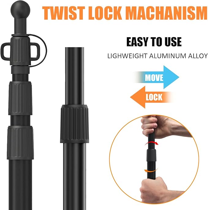 - 【STRONG& DURABLE】Our telescoping rods are made of premium aluminum with anti-corrosion processed, makes it survive all weather conditions. Wind-resistant design, horizontal bearing up to 26lbs., vertical up to 100lbs.