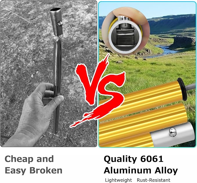 - Tarp Poles Aluminum Provides Easy Way for Carry:Our tent poles are made from 6061 aluminum alloy, it's only 0.76 kg/1.67lbs,with the additional bag make the collapsible pole well to carry,they can be taken to camping, backpacking, hiking or anywhere you want.