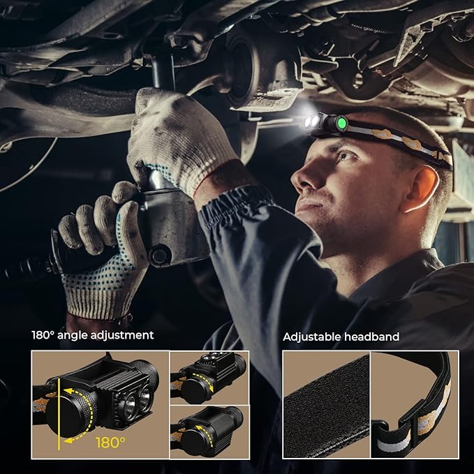- Build Quality: Constructed from aircraft-grade aluminum with hard-anodized anti-abrasive finish, the rechargeable headlamp is built to endure rough handling. IPX6 rated waterproof makes the D25LR have protection against liquid intrusion