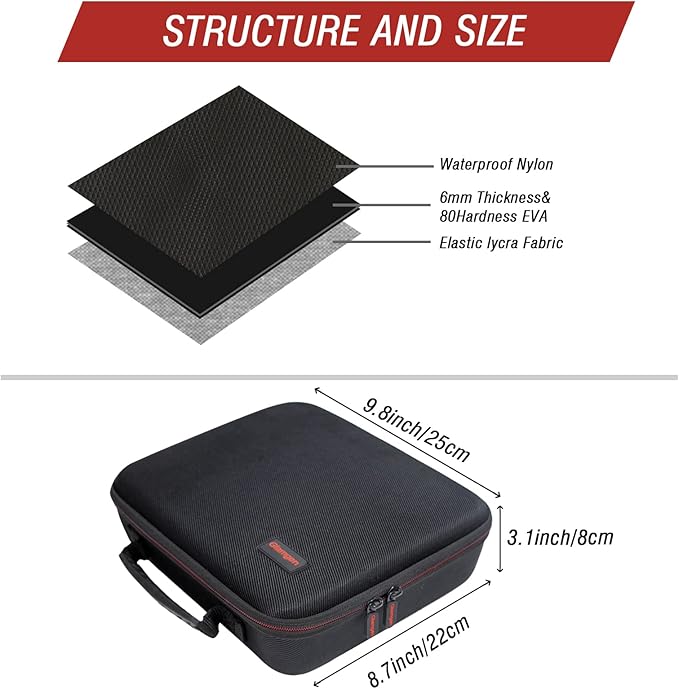 - Durable and Portable Design: Hard EVA shell provides shock resistance and water protection. Top handle for easy transport. Smooth 360-degree zipper ensures quick access.