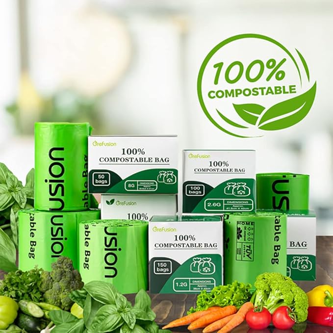 - 【COMPOSTABLE BAGS & MALL TRASH BAGS】The GreFusion compostable trash bags is the perfect size for small trash can receptacles in bathroom trash can, car trash can, kitchen trash can