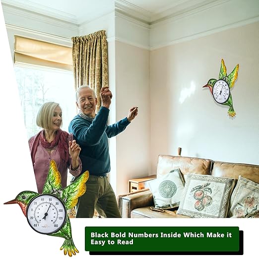 - [Wide Application] Outdoor thermometers for the patio can be removed for easy cleaning, and the beautiful hummingbird look can be used as a wall decoration to decorate indoors & outdoor. It is also a good choice as a present for parents and friends