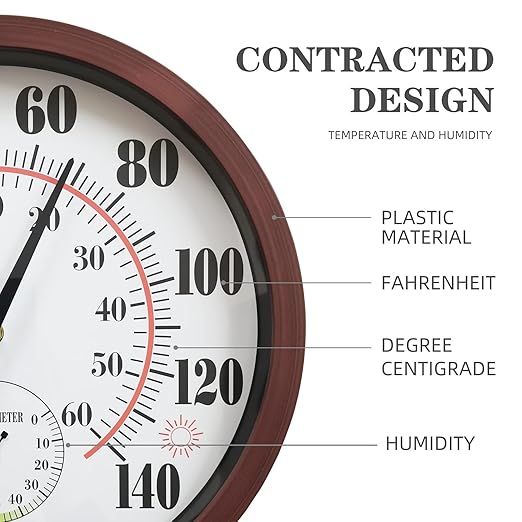 - Adaptable: Outdoor thermometer waterproof use plastic bottom case and acrylic dial, temperature range is -40 to 60°C, -40 to 140°F, adapt to all weather and climate