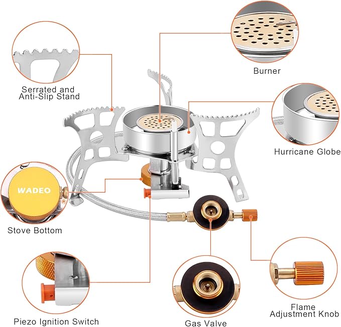 WADEO 3900W Windproof Camping Stove, Camping Gas Stove with Piezo Ignition, Backpacking Stove Portable Camping Stove with Two Fuel Canister Adapter for Outdoor Backpacking Hiking and Picnic