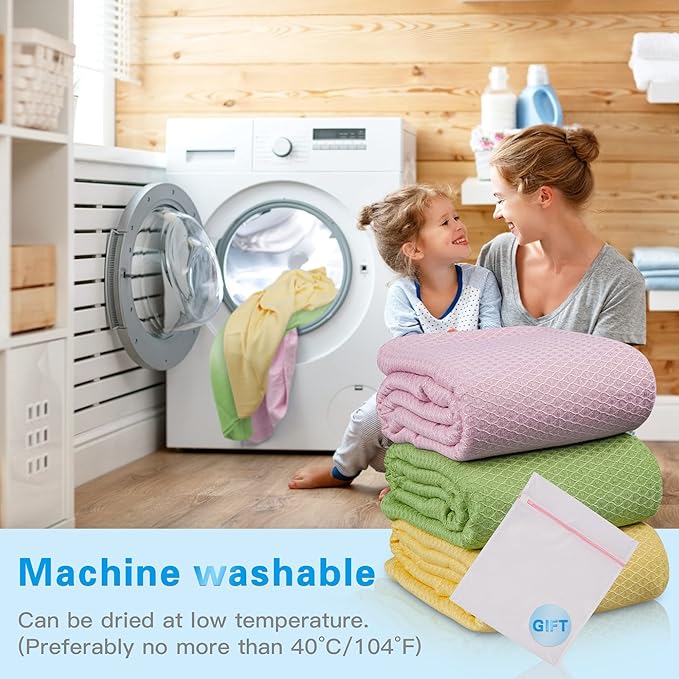 - Easy Care --- Our cooling blanket is machine washable and tumble dry (dry at low temperature, preferably no more than 40°C/104°F). We give away laundry bags to avoid knotting or hooking. But if your washing machine doesn't fit the laundry bag, you can also leave it out. The cooling blanket can be ironed at low temperature with a steam iron. Do not bleach.