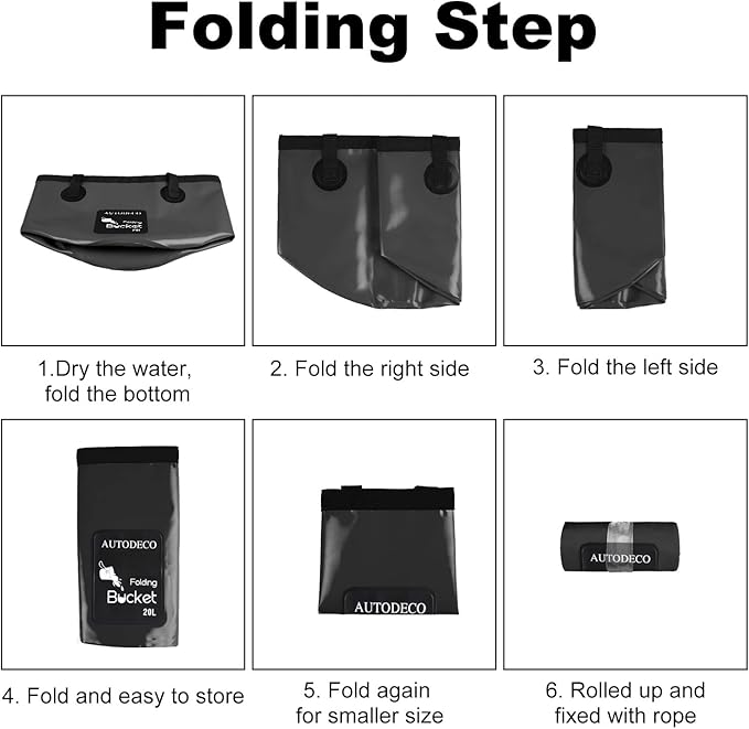 - Multi-purpose Fold Bucket: This AUTODECO Collapsible bucket is ideal for camping, fishing, traveling, boating, hiking, gardening, picnic, outdoor activities and daily use. It can be used as fish bucket, ice bucket, fruits and veggies basket, travel basin, coaches bucket for baseball, etc