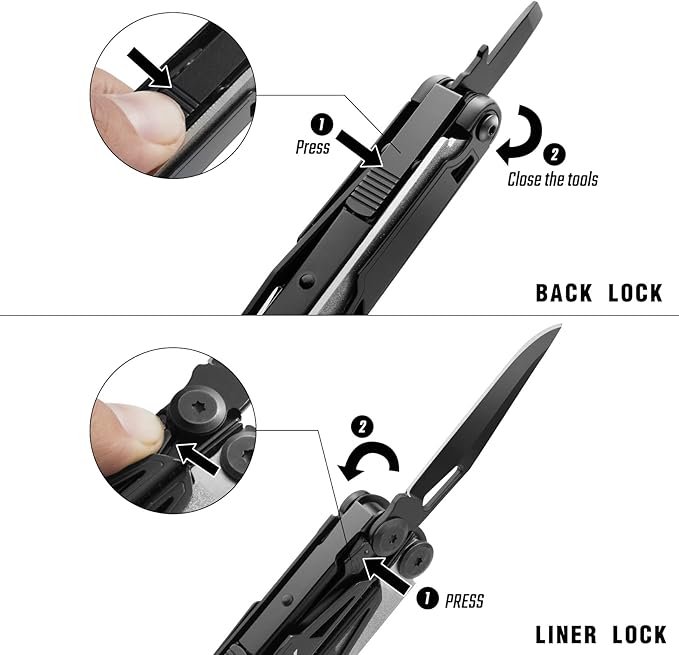 - Safety: It's designed with a self-locking system to ensure the sturdiness of a single tool during use and the security that it will not be suddenly closed during use