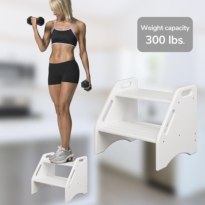 AMBIRD Wooden Two Step Stools Toddler with Safety Non-Slip Pads and Handles, Bamboo Step Stool for Bathroom, Bedroom, Kitchen Dual Height Step Stools for Kids (White)