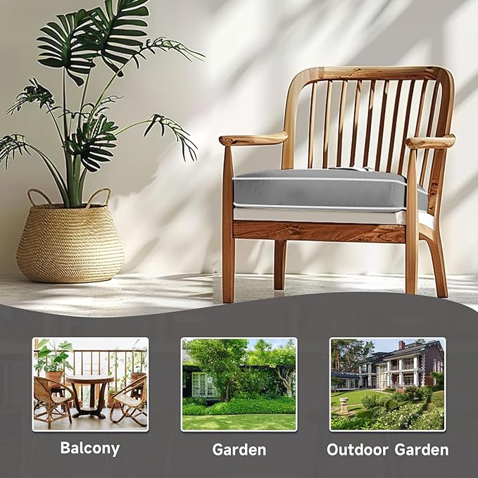 PNP FKJP 2 Pack Outdoor Chair Cushion 20" X 20" X 4", Waterproof Outdoor Seat Cushions with Non-Skid Ties,Grey (Cushion + Cover)