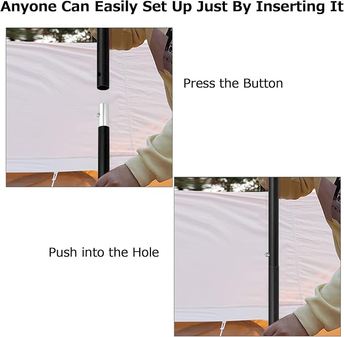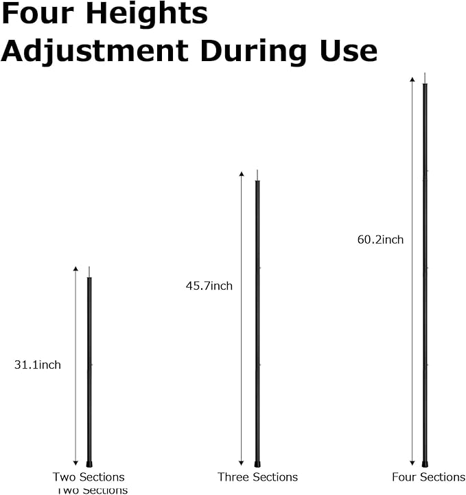 - Simple Button Lock Mechanism Simplifies Your Installation Process: Just push the 2 sections of poles into the holes by buttressing,after use,simply pull the spring to disassemble.