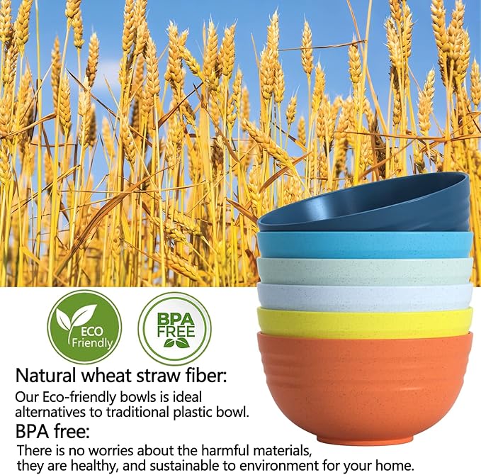 - 🌾ECO-FRIENDLY BOWLS-Homestockplus salad bowl made of natural organic wheat straw fiber, 100% BPA free, non-toxic, odorless and environmentally friendly. No harmful chemical materials. It’s healthy and beautiful tableware for your family.