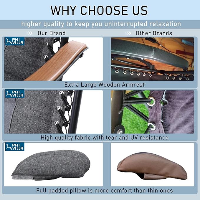 - No assembly: Easy folding and compact structure is suitable for any patio occasions, such as poolside, yard, beach or balcony. We provide 12 months warranty and lifetime customer support. Please just contact Phi Villa customer service if you have any issue with our product