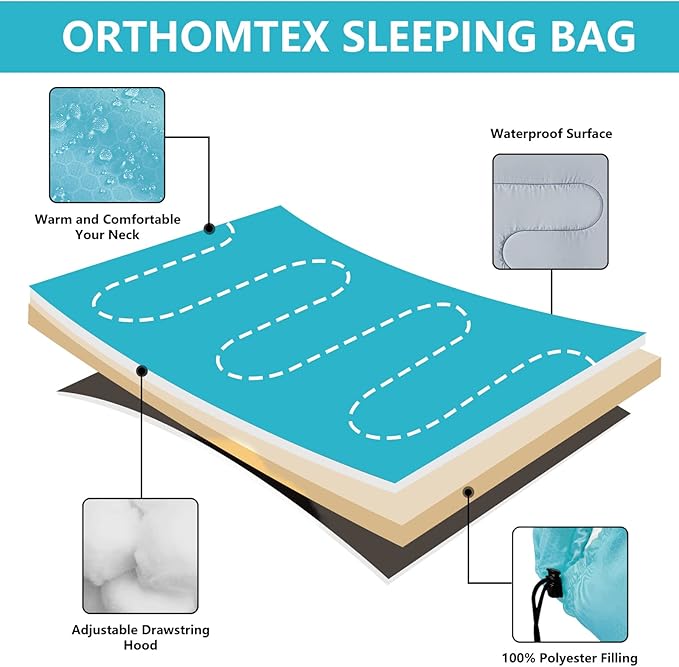 - 【 CLEAN 】 Our waterproof outer shell is easily wiped clean with a damp cloth. In case of heavy soilage the sleeping bag is designed for machine washing as well, ensuring easy maintenance and longevity.