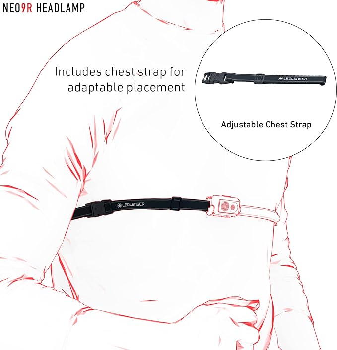 Ledlenser NEO9R LED headlamp Trail Running, Running lamp, Bright, 1200 lumens, Rechargeable, red Rear Light, Chest Strap, Reflective Headband (Black)