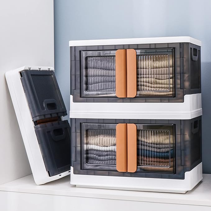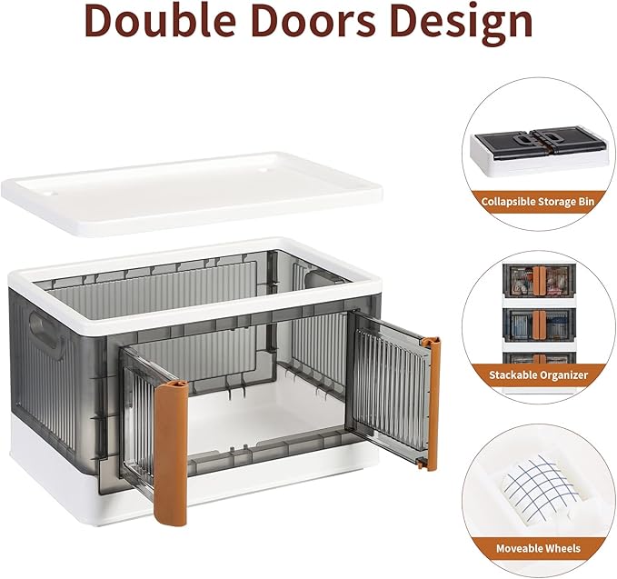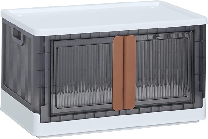 HAIXIN Storage Bins with Lids, Collapsible and Stackable Storage Bins, Plastic Closet Organizer, 8.4 Gal Folding Storage Box, Containers for Organizing with Door, 1 Pack
