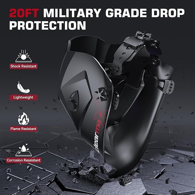 - 【ALL-DAY COMFORT】Made from PA material, the tensile strength is up to 120MPa, and the flexural modulus is up to 4000 MPa, ensuring better flexibility of the welding helmet. Weighs only 1 lb, and the adjustable headband is equipped with breathable padding to provide a perfect fit.
