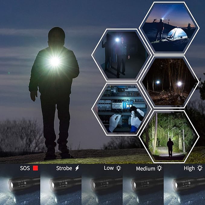 LED Flashlights,4pack Tactical Flashlight High Lumens Lights with 12Pack AAA Batteries Portable Waterproof Zoomable Flashlight with 5 Mode for Camping/Outdoor/Emergency(Black-4pack)