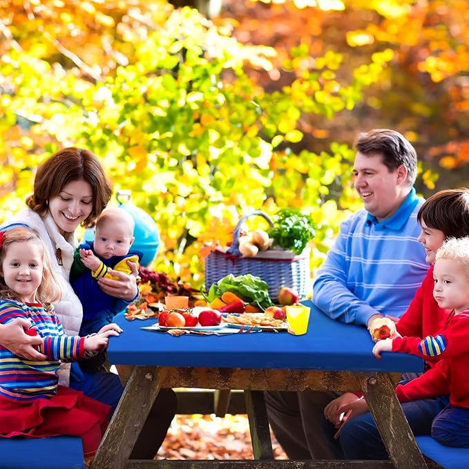 - Convenient to fold and store: these camping table cloths and bench covers are reusable, so you can use them for a long time; This vinyl tablecloths have a quality liquid-proof vinyl top, but long-term exposure to the rain is not recommended, as it may fade