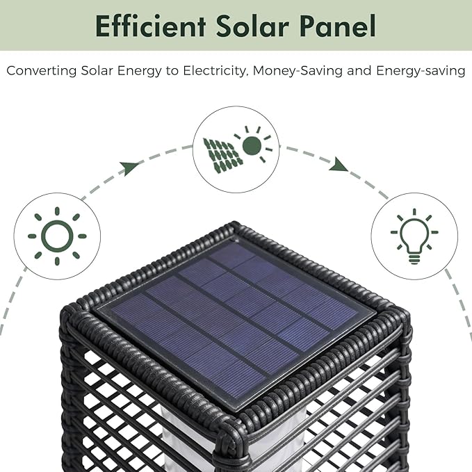 - WEATHER RESISTANT: Never worry about the harsh weather! This solar lamp is featuring an IP65 waterproof rating, resistant to rain, snow, and other conditions, which is a reliable option for your outside lighting needs